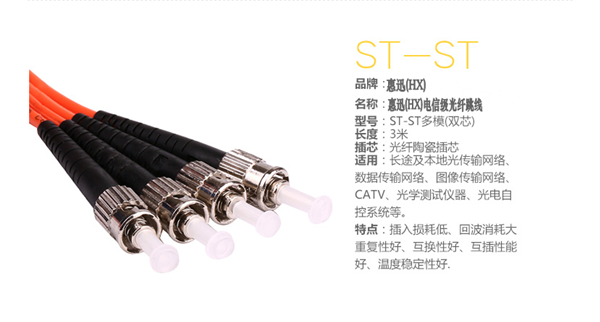 惠迅ST-ST多模雙芯3米跳線_多模光纖跳線