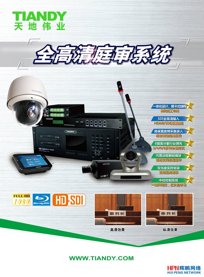 天津天地偉業(yè)數(shù)碼科技有限公司 “數(shù)字化庭審系統(tǒng)”通過加強(qiáng)計(jì)算機(jī)技術(shù)、圖像數(shù)字化技術(shù)和信息技術(shù)的應(yīng)用采用先進(jìn)的語音激勵(lì)畫面自動切換、專業(yè)的MPEG-4/H.264數(shù)字音視頻編碼并能夠?qū)崟r(shí)DVD光盤直錄、音像資料庫硬盤備份、網(wǎng)絡(luò)點(diǎn)播、動態(tài)片頭字幕疊加、嵌入式操作軟件、音視頻參數(shù)調(diào)整、“雙碼流”網(wǎng)絡(luò)傳輸直播技術(shù)。實(shí)現(xiàn)法院系統(tǒng)對審判的標(biāo)準(zhǔn)化建設(shè),利用現(xiàn)有的網(wǎng)絡(luò)對審判過程進(jìn)行有效的監(jiān)督和管理,貫徹科技法庭應(yīng)用理念,提高了審判過程的真實(shí)性、有效性和公平性,加強(qiáng)了法院在辦案、辦公管理的信息化程度。