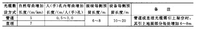 表 光纜敷設(shè)規(guī)定的預(yù)留長度