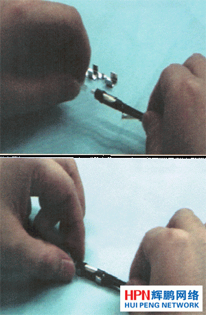 4.1、將防塵帽套在陶瓷芯上,然后用手指捏緊連接器外殼,向光纜方向用力推動,同時小幅度旋轉(zhuǎn),取出外殼